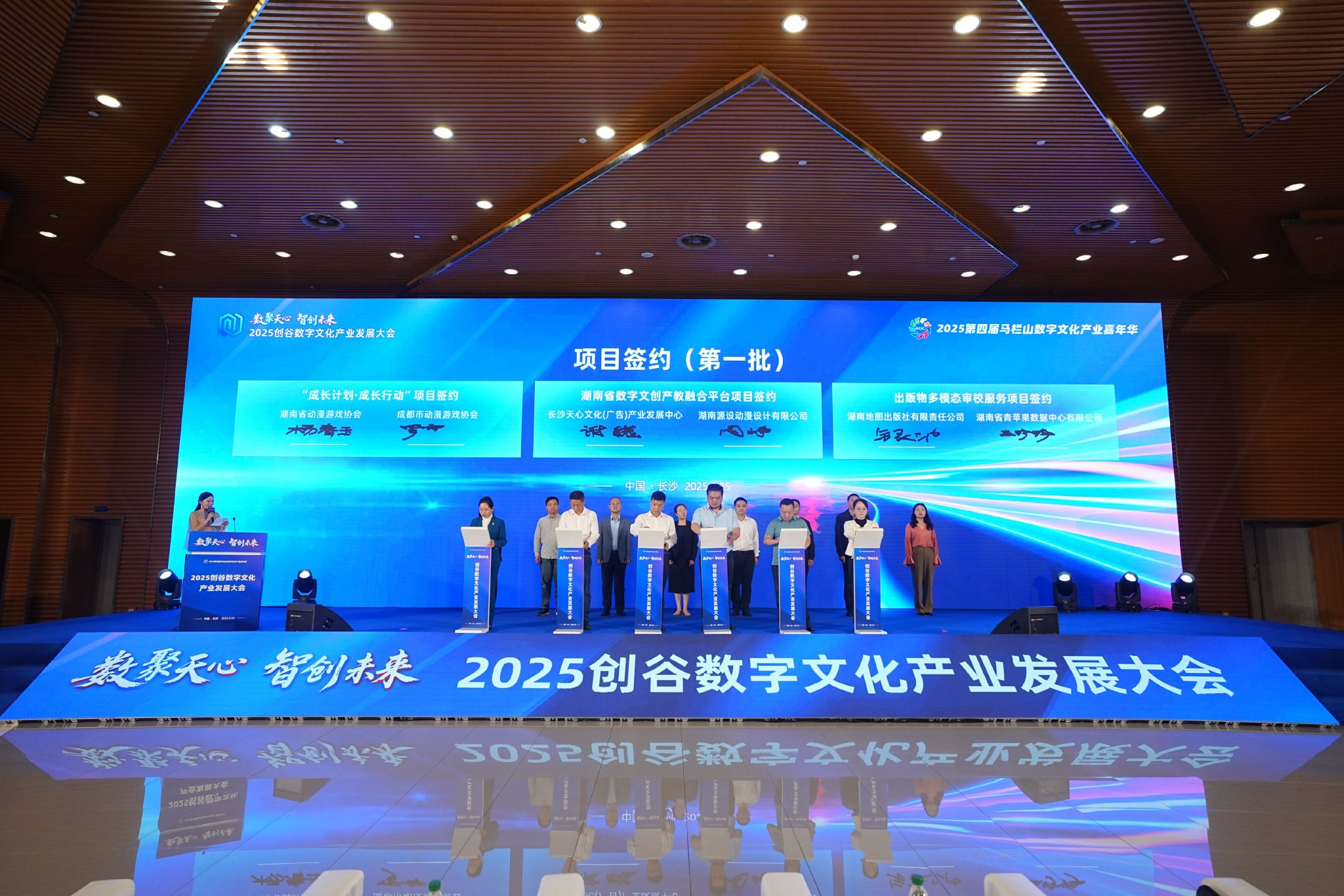 在项目签约环节,长沙天心文化(广告)产业发展中心与湖南源设动漫设计有限公司签约湖南省数字文创产教融合平台项目;湖南省动漫游戏协会与成都市动漫游戏协会签约 “成长计划”服务平台项目 ;湖南建匠科技股份有限公司分别与颂泰文化(湖南)有限公司、湖南华漫兄弟卡通有限公司签约数字产业人才服务项目;长沙灵竟科技有限公司与长沙风影行影视文化有限公司、湖南智邦汇影传媒有限公司签约《觉醒电竞》微短剧项目及“竞幕计划”电竞IP短剧生态共创项目;河南华冠文化科技有限公司与湖南漫村文化发展有限公司签约新文创IP产品项目;湖南省青苹果数据中心有限公司与湖南地图出版社有限责任公司签约出版物内容审校服务项目。